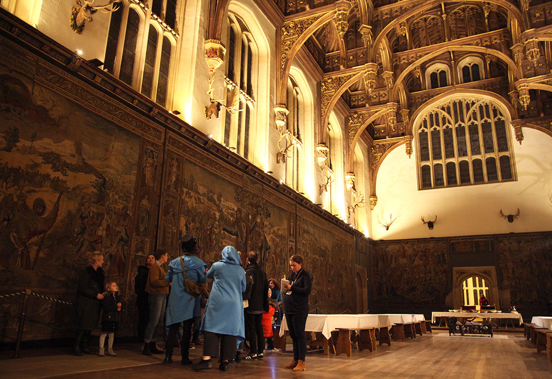 The Green Man took over the Queen’s Guard Chamber. Gnarly vines and growing stalks were projected on the walls. In order to reveal the hidden letters and reclaim the room, visitors had to step on keys that were hidden in the patterns of specially designed rugs.