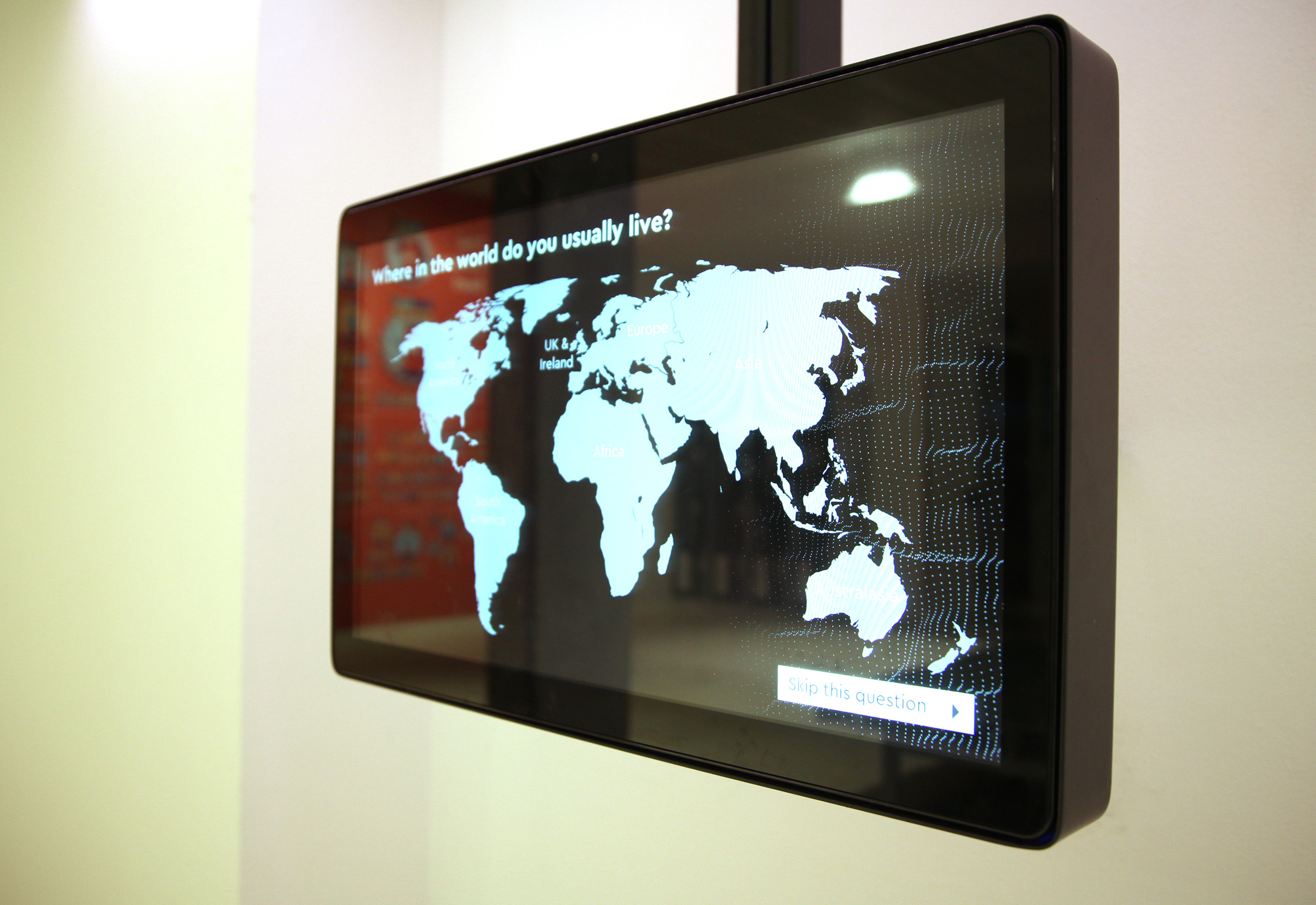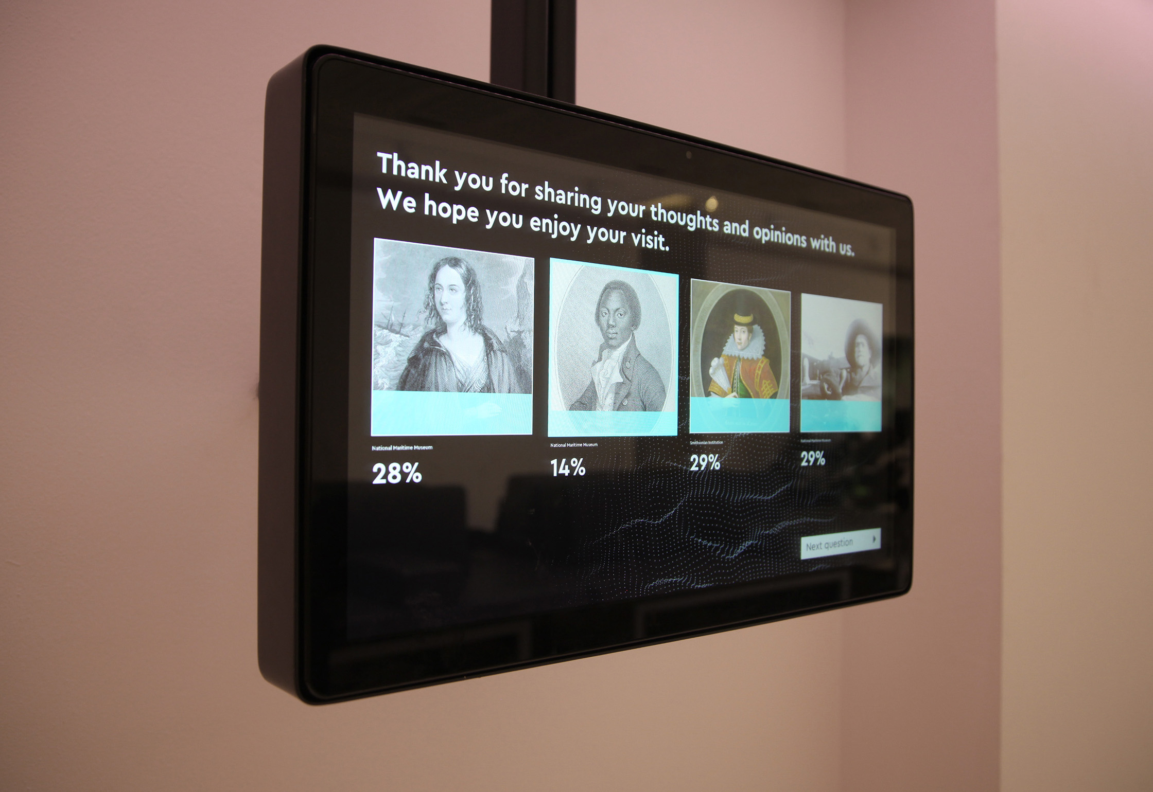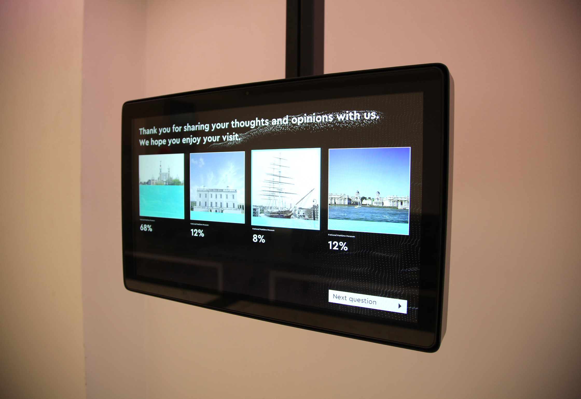 We were asked by the National Maritime Museum to create an interactive to collect and display visitor data from across the museum. They wanted to ask their visitors a number of random questions – from seeing where their visitors live, to how they got the museum that day, to where else had they visited in Greenwich. Also gauging their views on what they’d like to see for up and coming exhibits and topical questions on subjects such as climate change and plastic in the seas.