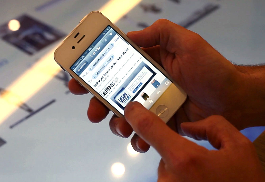 The Selfridges Denim Studio is the world’s largest denim retail destination, stocking over 400 different lines. With so many styles to choose from, how can the customer decide and discover the stories around the jeans: the brands, manufacturers, histories, and the range of denim on offer? Selfridges wanted an interactive solution that could facilitate conversations between customers and the Selfridges Denim experts.